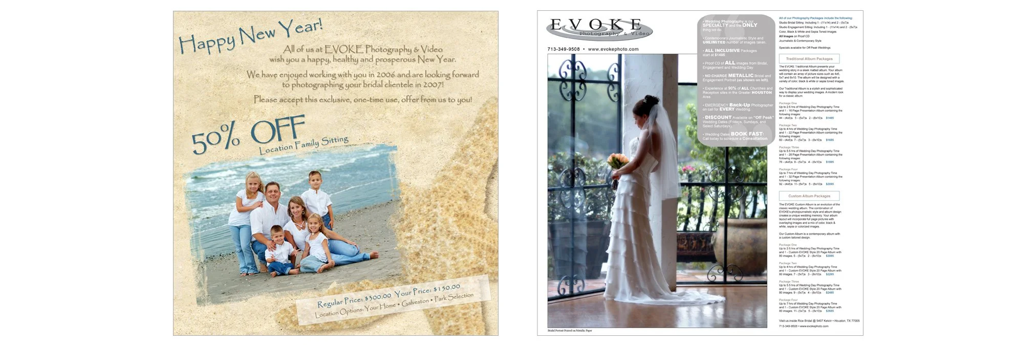 Front and Back of Flyer for EVOKE Photography & Video